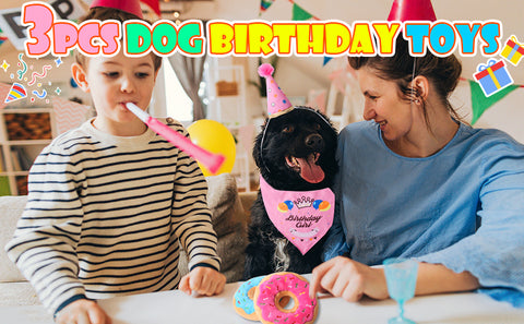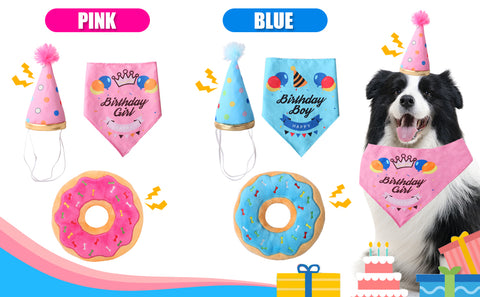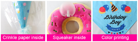 Set Of Three:You will get 1 Dog Birthday Bandana + 1 Squeaky Dog Birthday Hat + 1 Donut. Let's take photo and record the beautiful moment,making your lovely puppy be a attractive birthday star!